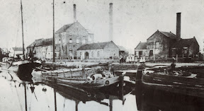 Bij K.B. van 21 juni 1866, no. 60 wordt aan 0.0. van den Berg, direkteur [foto links van diens woning; click er op voor een vergroting -gb] der Overijsselse beetwortelsuikerfabriek te Lemele vergunning verleend tot het maken van een gasinrichting tot verlichting van de fabriek en de daartoe behorende gebouwen. [Een der twee pijpen op de bovenste twee foto's is van de 'inrichting' die gas leverde aan de naburige suikerfabriek De volgende foto wekt echter de indruk dat er zelfs drie schoorsteenpijpen hebben gestaan. Nu hebben we enige ervaring met het tellen van bijvoorbeeld uitkijktorens op de Lemelerberg, dus we wagen ons hier niet aan een bewering, maar stellen slechts een vraag... wie het weet mag het zeggen! -gb][Dank aan OudOmmen.nl!]
